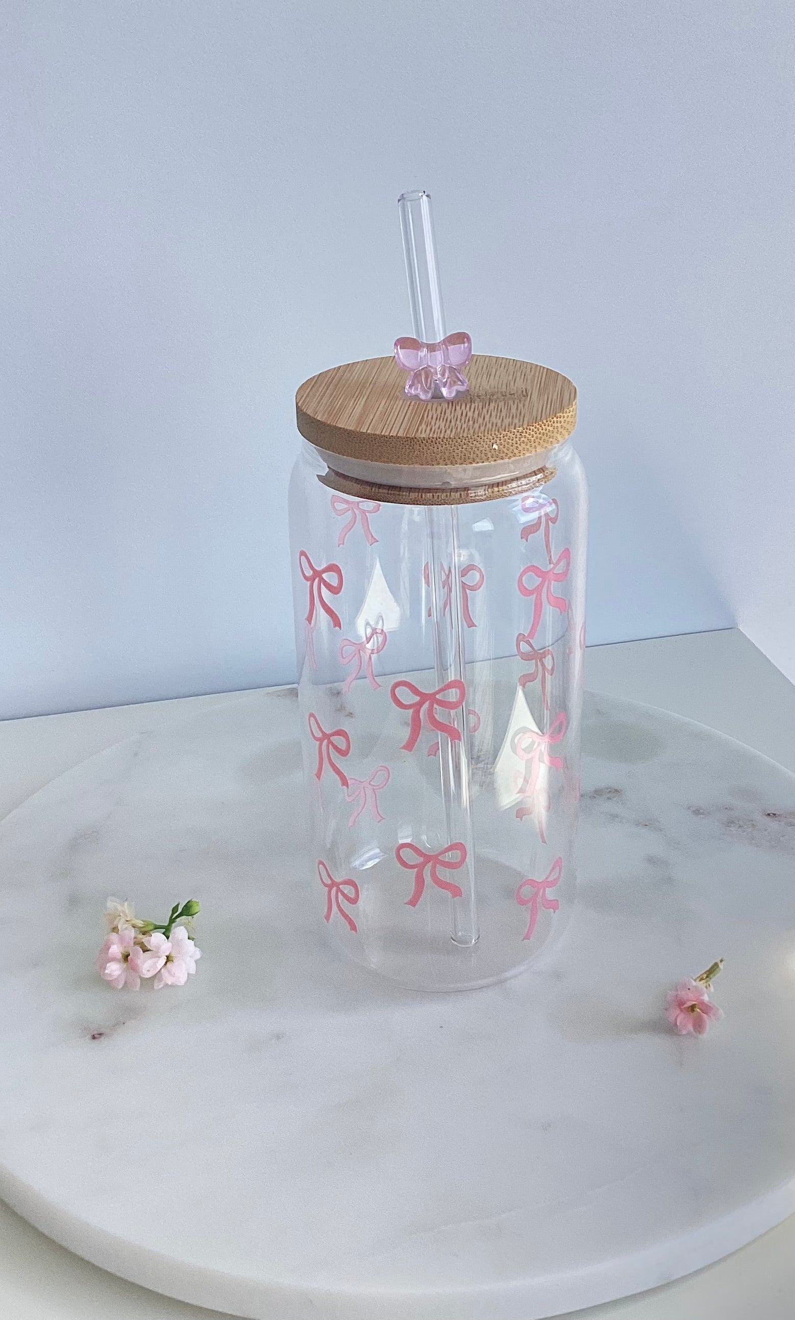 Unser liebevoll designtes Trinkglas mit zarten rosa Schleifen ist nicht nur praktisch, sondern auch ein absoluter Hingucker. Der wiederverwendbare Glasstrohhalm mit süßem Schleifendetail und der Bambusdeckel machen das Trinkerlebnis besonders. Perfekt für Eiskaffee, Smoothies, Bubble Tea oder erfrischendes Wasser.